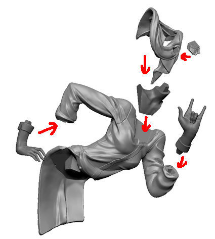 ・右腕をはめ込む際、ダボを滑り込ませるようにしてハメます。