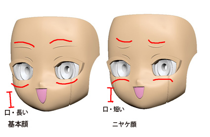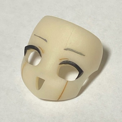 基本顔フェイスにニヤケ顔用目をハメると下部に隙間ができます。判定の目安にしてください