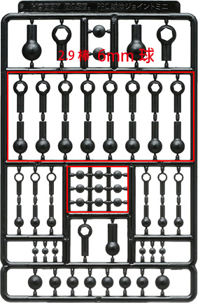 「関節技・球体ジョイントリンク・ライトフレッシュ」のボールジョイント2.9mm棒を使用します